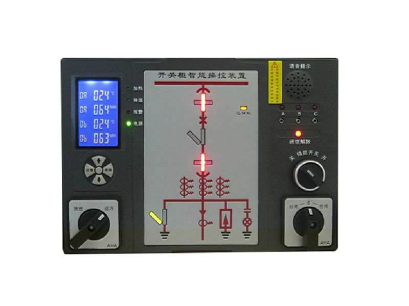 智能操控裝置具有一次回路模擬圖及開關(guān)狀態(tài)指示,高壓帶電顯示,自動溫濕度控制,人體感應(yīng)自動照明,語音提示,電參數(shù)測量及RS485通訊接口等眾多功能,集操作、顯示于一體。